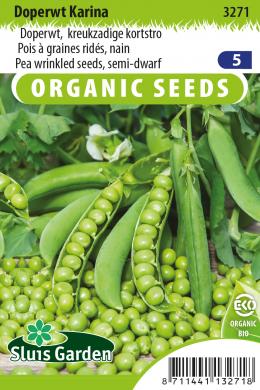 Karina staat bekend om zijn vroegheid, gecombineerd met een grote gezonde oogst van mooie donkergroene peulen. Stevige halfhoge planten die zeer gemakkelijk plukbaar zijn. De 10 cm lange peulen bevatten ca. 10 grote heerlijk zoete erwten. Voorzaaien onder glas vanaf half januari voor een vroege oogst. Voorgezaaide planten afharden en eind maart uitplanten. In de volle grond op regels zaaien voor een latere oogst op regels van 40 cm met om de 10 cm een erwt.