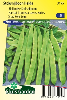 Betrouwbaar en goed resistent ras met weinig vlies in de 25 cm lange, platte en brede peulen zonder draad. Kleur peul is lichtgroen. Helda is wat later dan de nieuwere variëteit Algarve. Voor een vroege oogst onder glas zaaien of alvast in potjes voorzaaien. Bonen houden van warmte en teveel wind en nachtvorst zijn zeer schadelijk. Zaaien of uitplanten ná half mei in de vollegrond. Stokken dakvormig plaatsen en bij elke stok ca. 5 zaden planten en de planten later omhoog begeleiden.